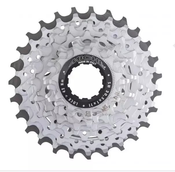 La cassette MICHE est compatible avec les roues-libres Shimano 11 vitesses.Elle est conçue avec des couronnes en acier chromé opaque d'une belle longévité. Le contre-écrou de blocage est en aluminium 7075-T6 de haute qualité.