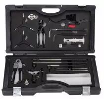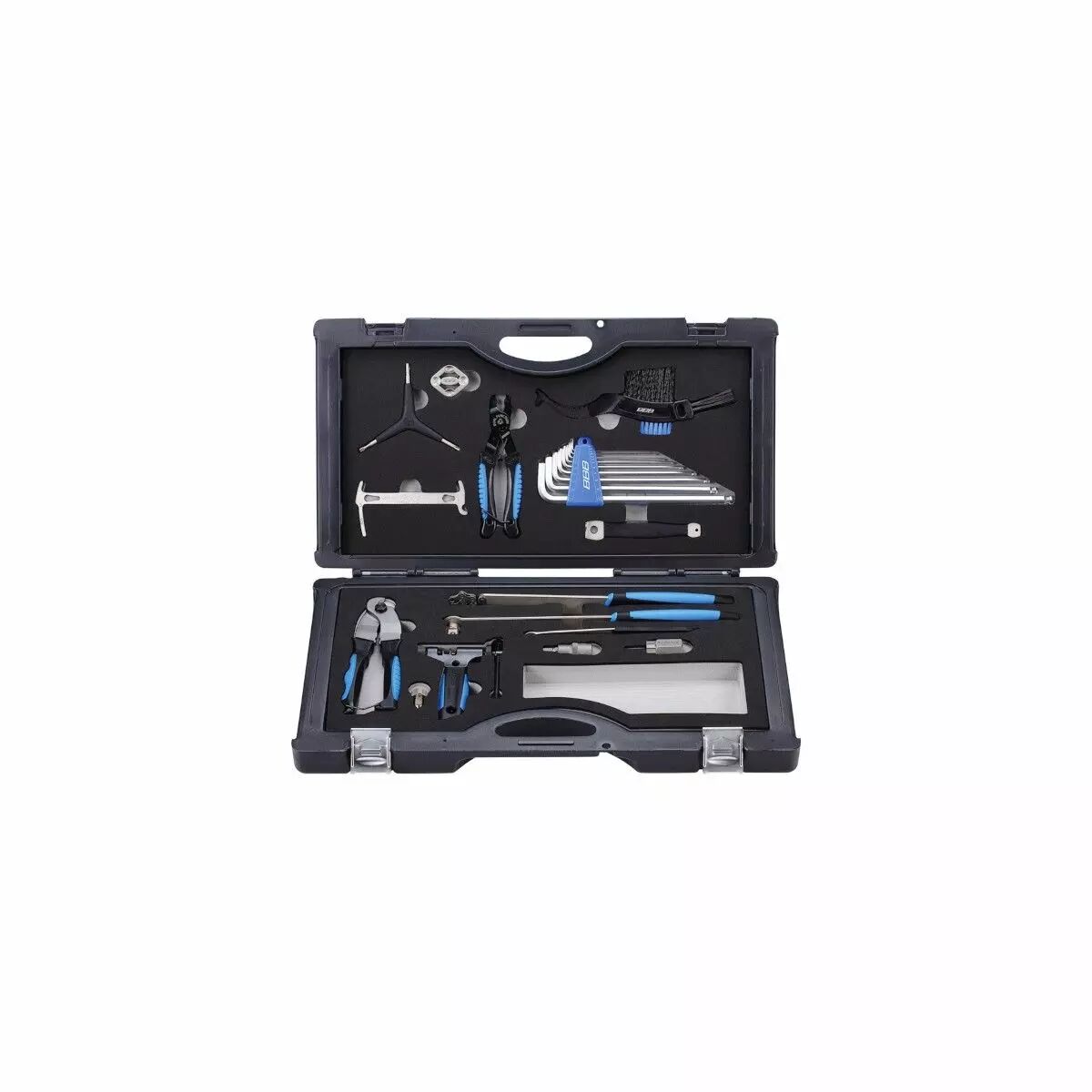 Contenu de la boîte: TurnTable, BTL-11 -Démonte-roue libre). LockOut, BTL-12S -Démonte-contre-écrous. Hexagon 8 mm, BTL-13 - Clé hexagonale. Hexagon 10 mm, BTL-13 - Clé hexagonale. Turner II, BTL-15 -Clé à rayons. ToothBrush, BTL-17 -Brosse à cassette. ThreeStar, BTL-28 -Kit de clés hexagonales. TorxStar, BTL-28T -Jeu de clés Torx. BoldGrip, BTL-32L -Clé pour écrous de plateau. BottomFix, BTL-33L - Démonte-contre-écrous / Clé pour boîtier de pédalier. ChainCecker, BTL-51 - Indicateur d'usure de la chaîne. ProfiCut, BTL-54 - Pince coupe câble. ProfiConnect, BTL-55 - Dérive-chaine. LinkFix, BTL-77 - Pince attache rapide. 2 x ProfiLift, BTL-79 - Démonte pneu.