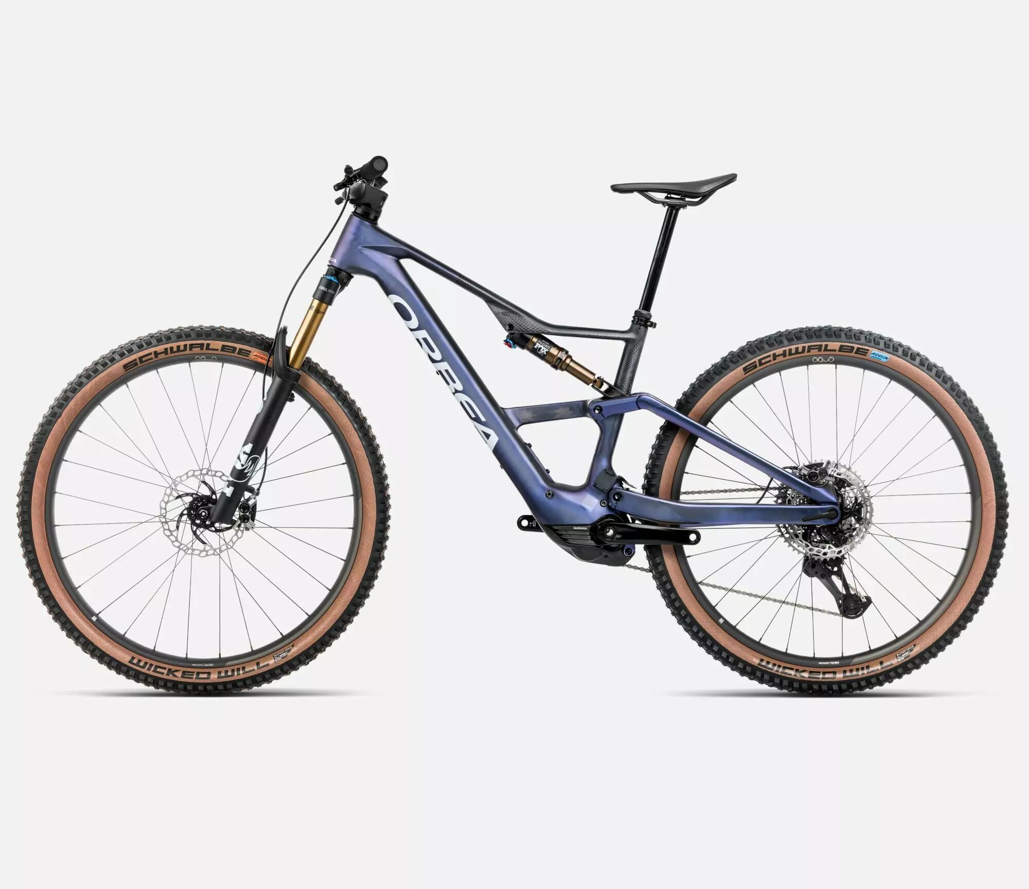 Réf. : T324 Orbea Rise SL M-LTD 2026 = VTT électrique tout-suspendu 140mm de débattement haut de gamme avec le nouveau RS Control System, cadre carbone OMR, disponible en batteries 420Wh ou 630Wh.